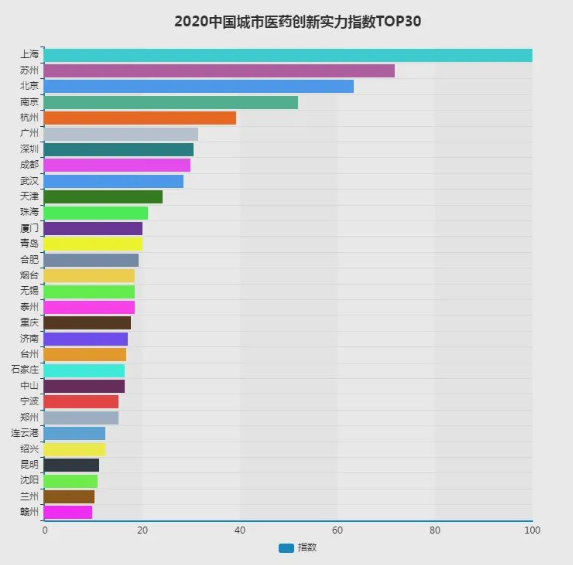 由诗迈医药人力研究院编制的“2020中国城市医药创新实力指数”正式发布。中国城市医药创新实力指数通过设置多维度评价体系,根据各城市医药企业创新过程及创新成果、产业成熟度、经济数据分析、博士人才等指标进行综合分析,旨在用数字标杆打造医药产业高质量发展“风向标”。