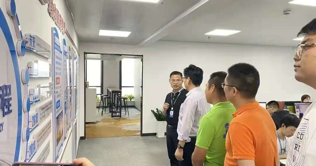 在诗迈医药人力集团董事长谢总的引导下,陈书记一行在公司进行了参观。