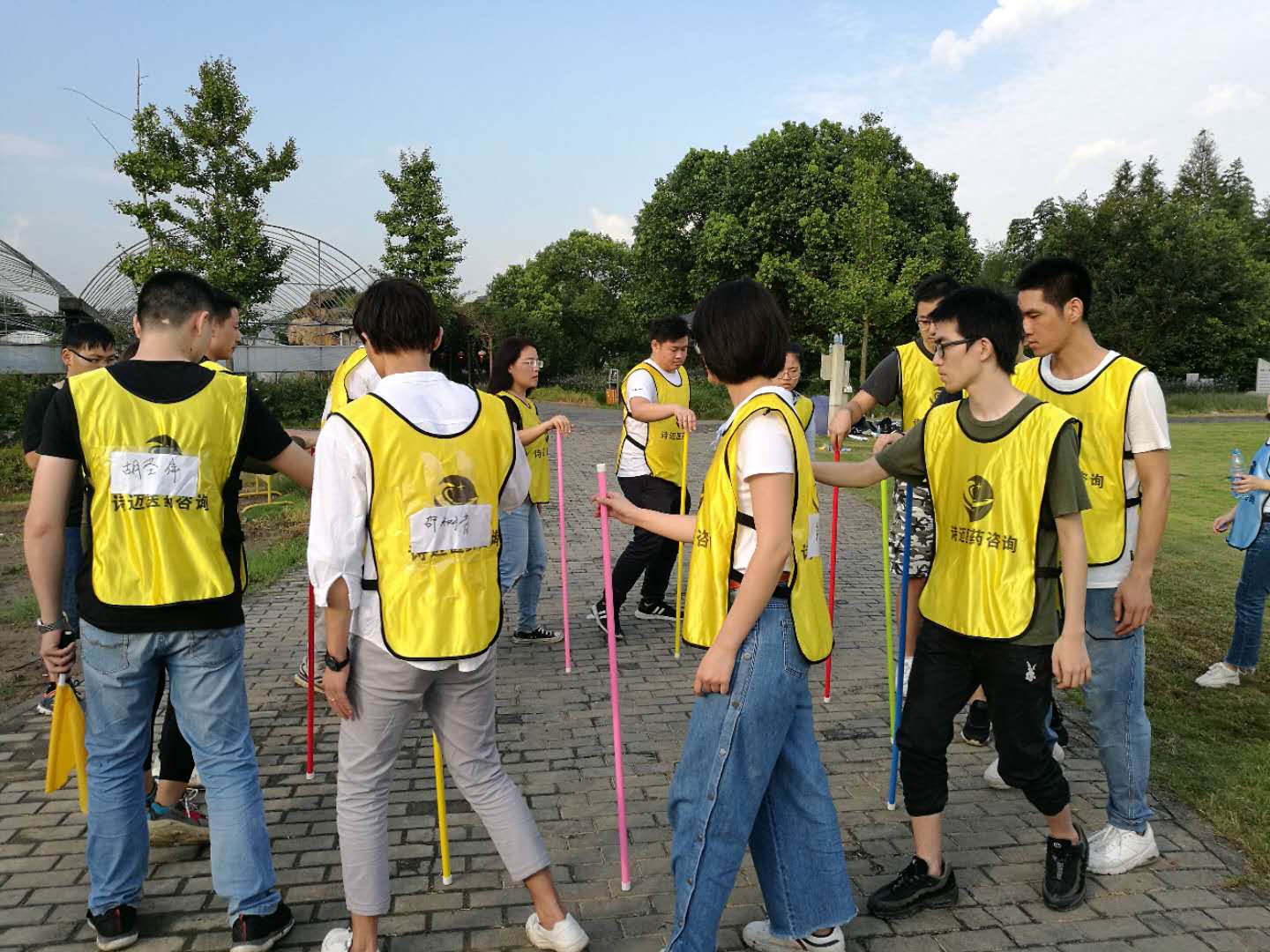 接下来就是我们的重头戏,素质拓展游戏了,据说最后的优胜方还能获得我们诗迈小公主提供的神秘大奖。