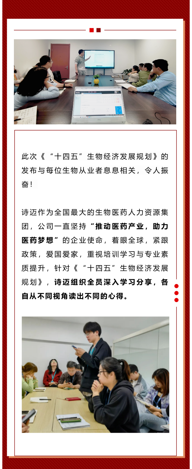 诗迈全员深入学习分享《“十四五”生物经济发展规划》-专业医药猎头-医药人才网杭州诗迈医药科技有限公司