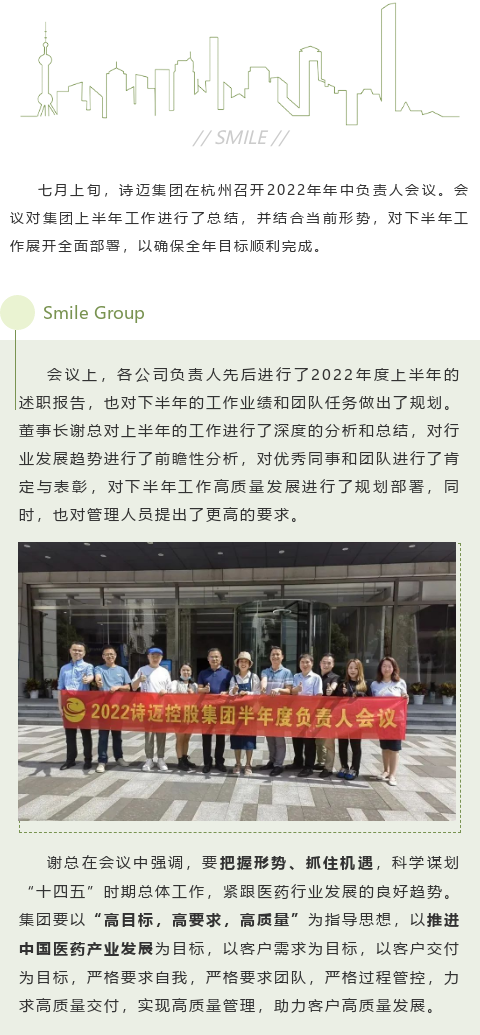 2022诗迈集团半年度负责人会议在杭召开!-专业医药猎头-医药人才网杭州诗迈医药科技有限公司