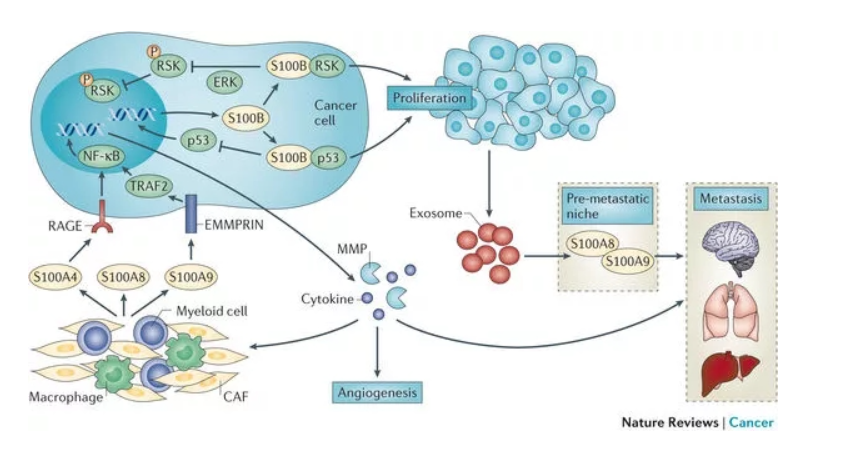 S100蛋白是1965年由Moore BW在牛脑中发现的,因该蛋白能溶解于100%硫酸铵中而得名,由两个亚单位α、β结合形成S100αα、S100αβ、S100ββ。其中S100β(S100αβ与S100ββ)蛋白又叫中枢神经特异蛋白,也有学者将其描述为脑的“C反应蛋白”,分子量为21KD的酸性钙结合蛋白,主要由星形胶质细胞产生,通过半胱氨酸残基形成二硫键,以二聚体活性形式大量存在于中枢神经系统中。