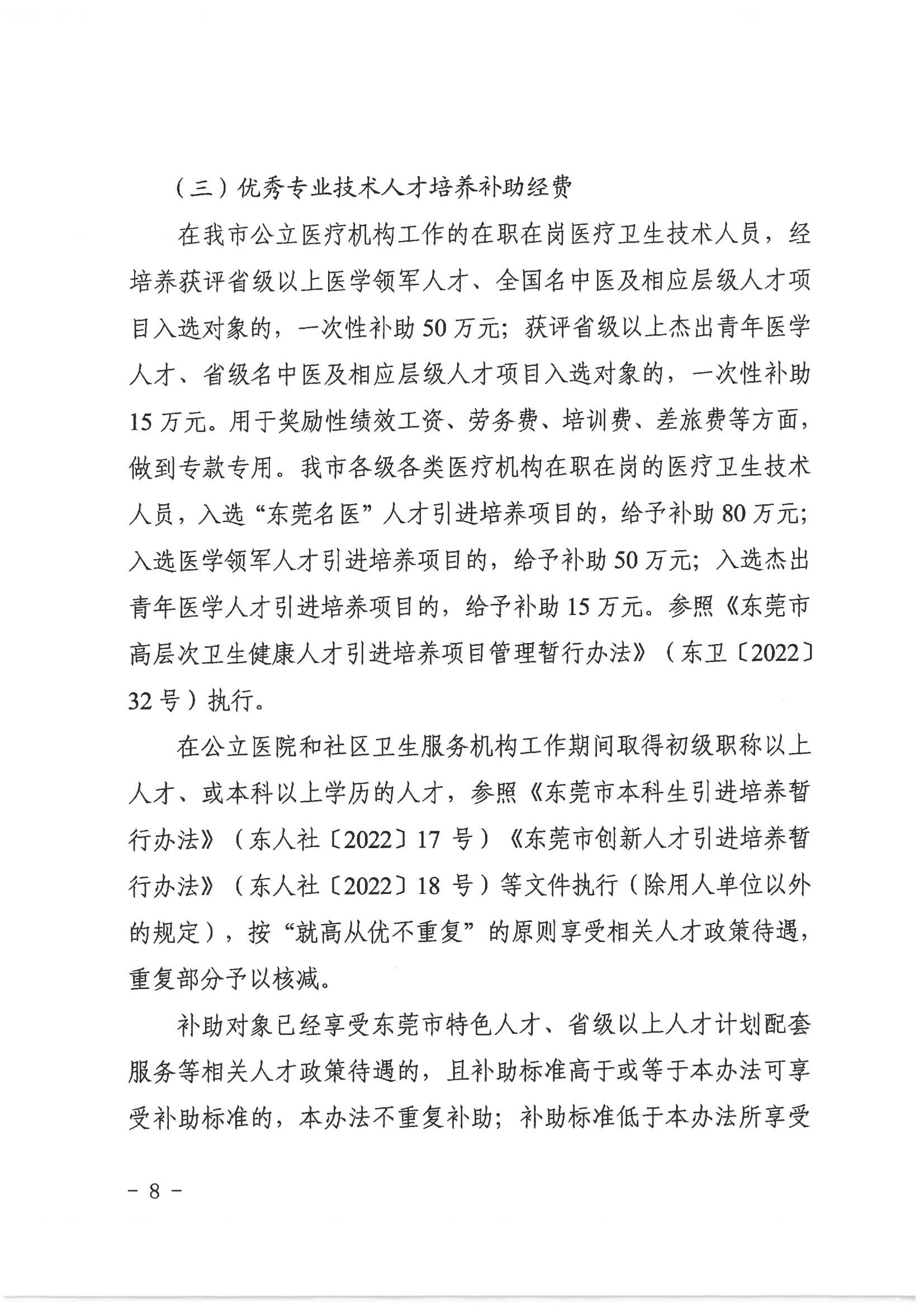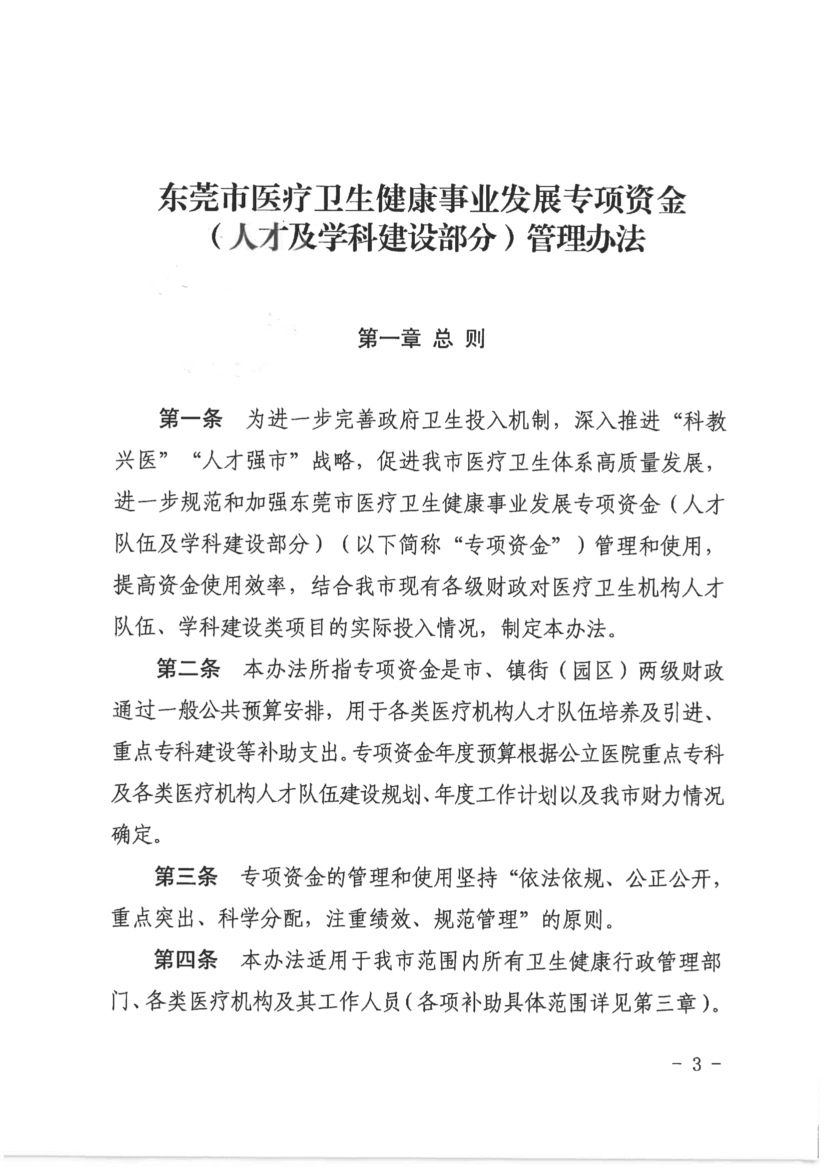 来源:东莞市卫生健康局近日,广东省东莞市卫生健康局、市财政局联合印发《东莞市医疗卫生健康事业发展专项资金(人才及学科建设部分)管理办法》。《办法》明确,2023年4月—2026月3月,东莞将每年安排市财政专项资金支出预算约5468.4万元,支持全市各类医疗机构人才队伍培养及引进、重点专科建设补助等支出。全文如下: