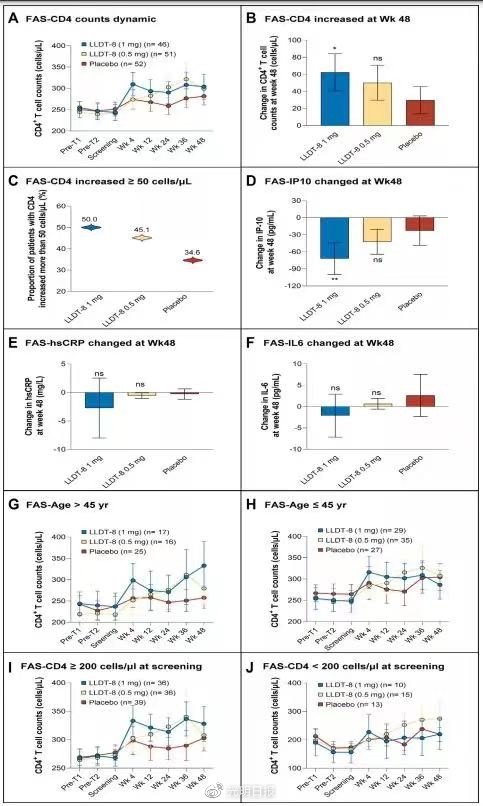 记者了解到,此前,北京协和医院与上海医药集团联合开展了雷腾舒治疗艾滋病免疫重建不全患者的全国多中心II期临床研究。“我们按照国际标准进行了严格的前瞻性随机、对照、双盲、双模拟研究,全国共有9个中心共同参与。”论文共同第一作者、北京协和医院感染内科联合培养项目博士研究生刘晓笙说,结果显示,雷腾舒1mg每日1次口服,经过48周的治疗后,能够显著提升艾滋病免疫重建不全患者的外周血CD4+ T细胞计数(63/mm³),显著高于安慰剂组(32/mm³)和低剂量0.5mg雷腾舒组(49/mm³),在45岁以上人群这一增长更为突出,CD4+增长可达96/mm³。与此同时,雷腾舒显著降低了艾滋病患者体内的炎症水平,且不同组间的不良反应发生率类似。