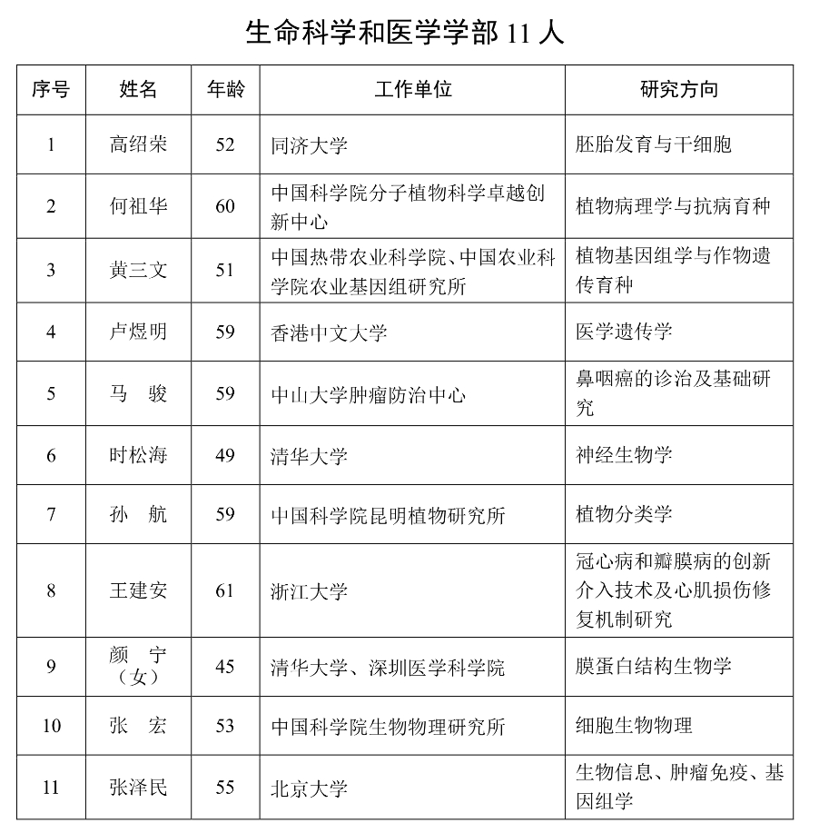 根据《中国科学院院士章程》《中国科学院院士增选工作实施办法(试行)》等规定,2023年中国科学院选举产生了59名中国科学院院士,其中生命科学和医学学部11人。