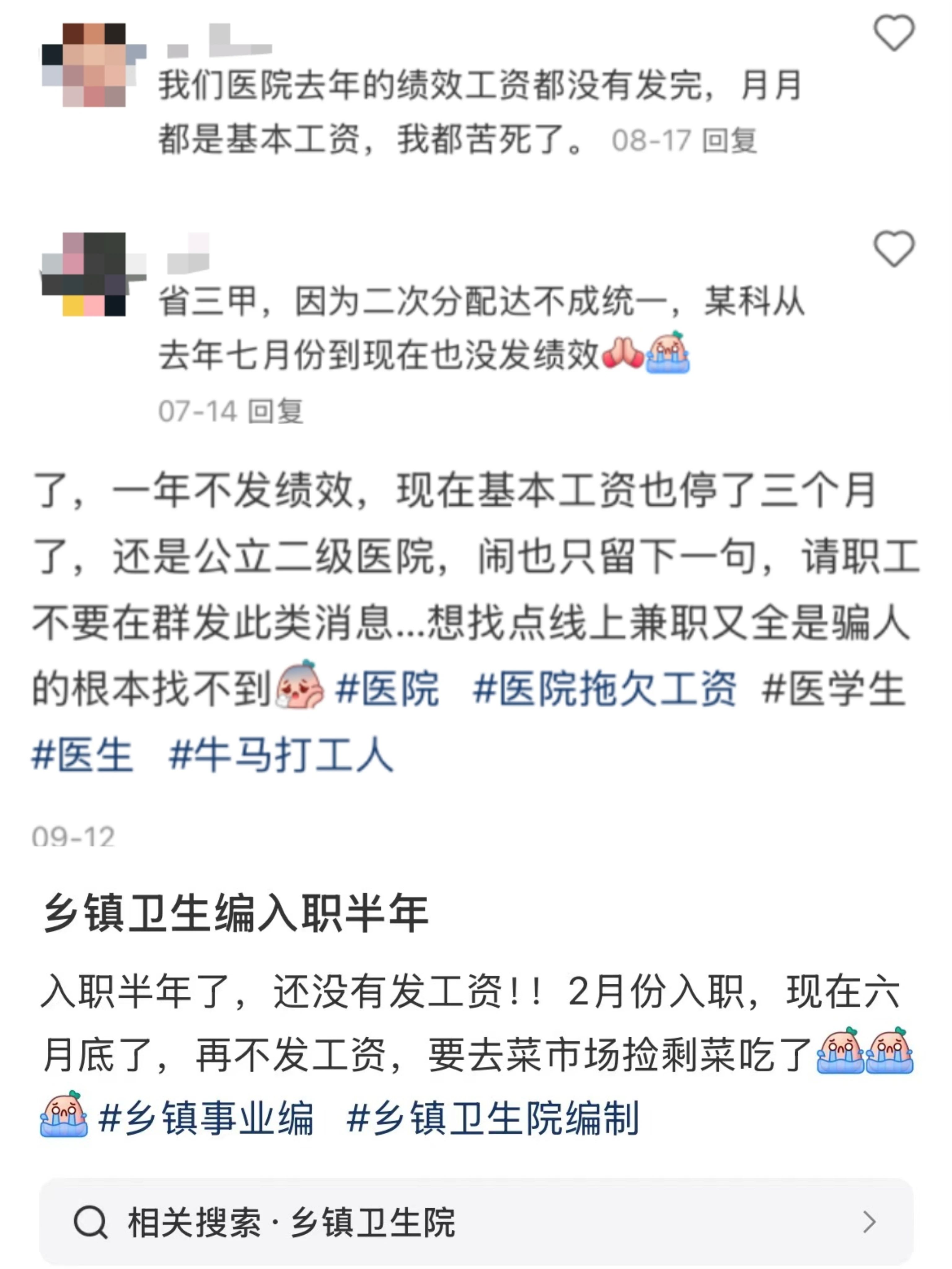除公立医院倒闭之外,医院降薪、欠薪的消息频繁出现在社交媒体。